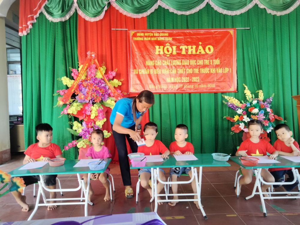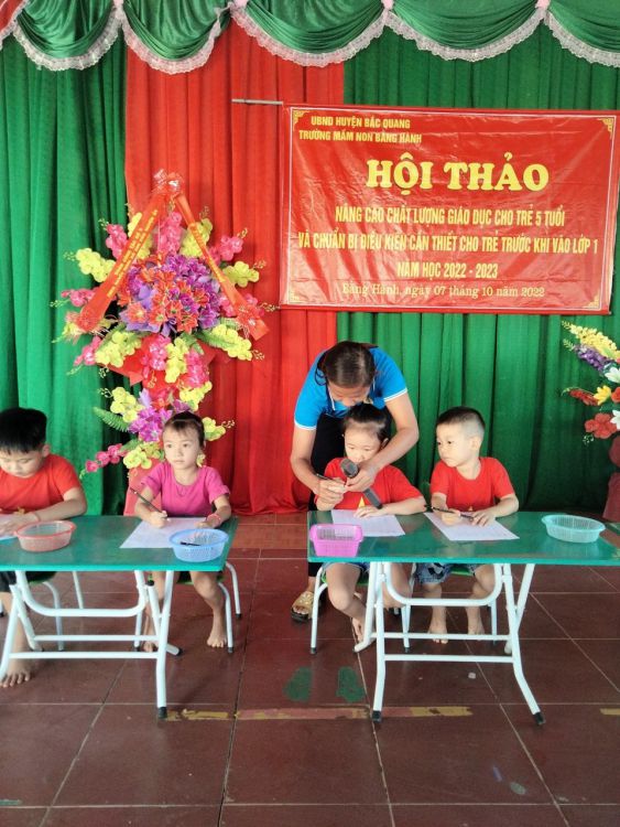 Thực hiện công văn số 412/PGDDT-CM ngày 23/09/2022 Của phòng GD&ĐT Bắc Quang về việc thực hiện: Nâng cao chất lượng giáo giáo dục trong các trường mầm non năm học 2022-2023. Chiều ngày 07/10/2022 Trường Mầm non Bằng Hành tổ chức Hội Thảo phối hợp với Trường TH& THCS Bằng Hành, Trường Tiểu học Ngọc Lâm tổ chức Hội thảo: "Nâng cao chất lượng giáo dục cho trẻ 5 tuổi và chuẩn bị các điều kiện cần thiết cho trẻ khi vào lớp 1.